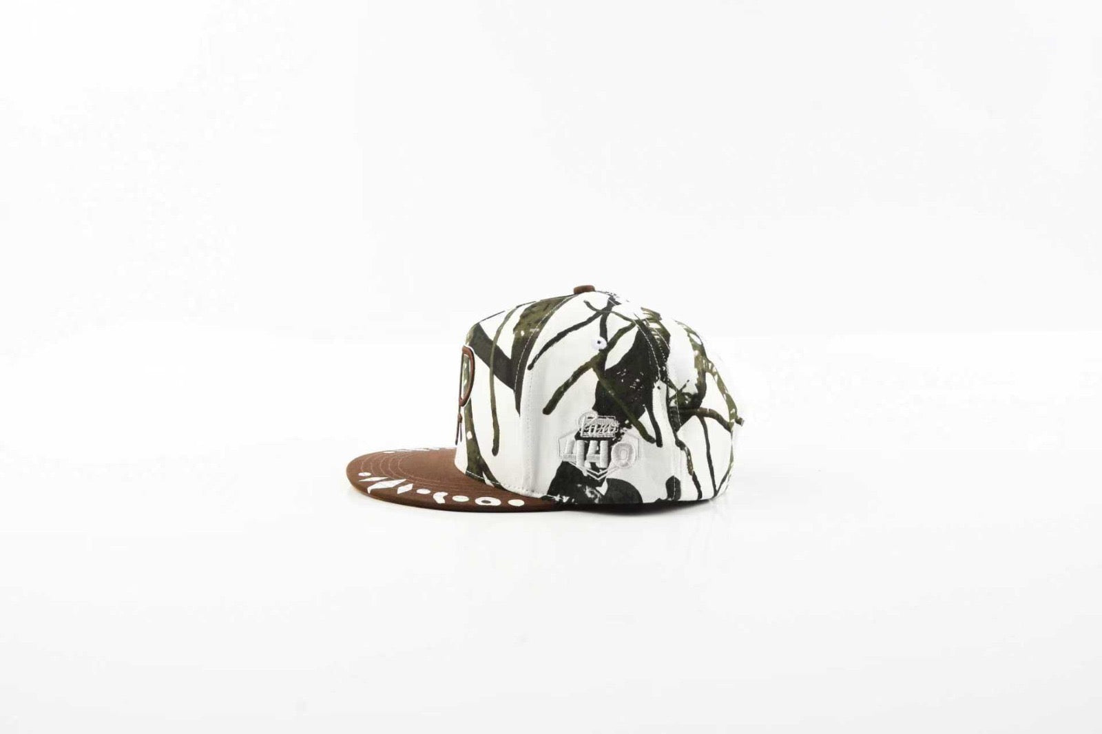 Step into the wild with the 4P Timberline Drift Snapback, a premium Puro 440 piece crafted for those who live between ranch life and the outdoors. Featuring a white-and-forest camo crown, this hat blends rugged terrain energy with clean modern style. The 3D brown 4P front embroidery brings bold presence, while the brown leather-look bill is finished with a custom white pattern for a unique signature touch.