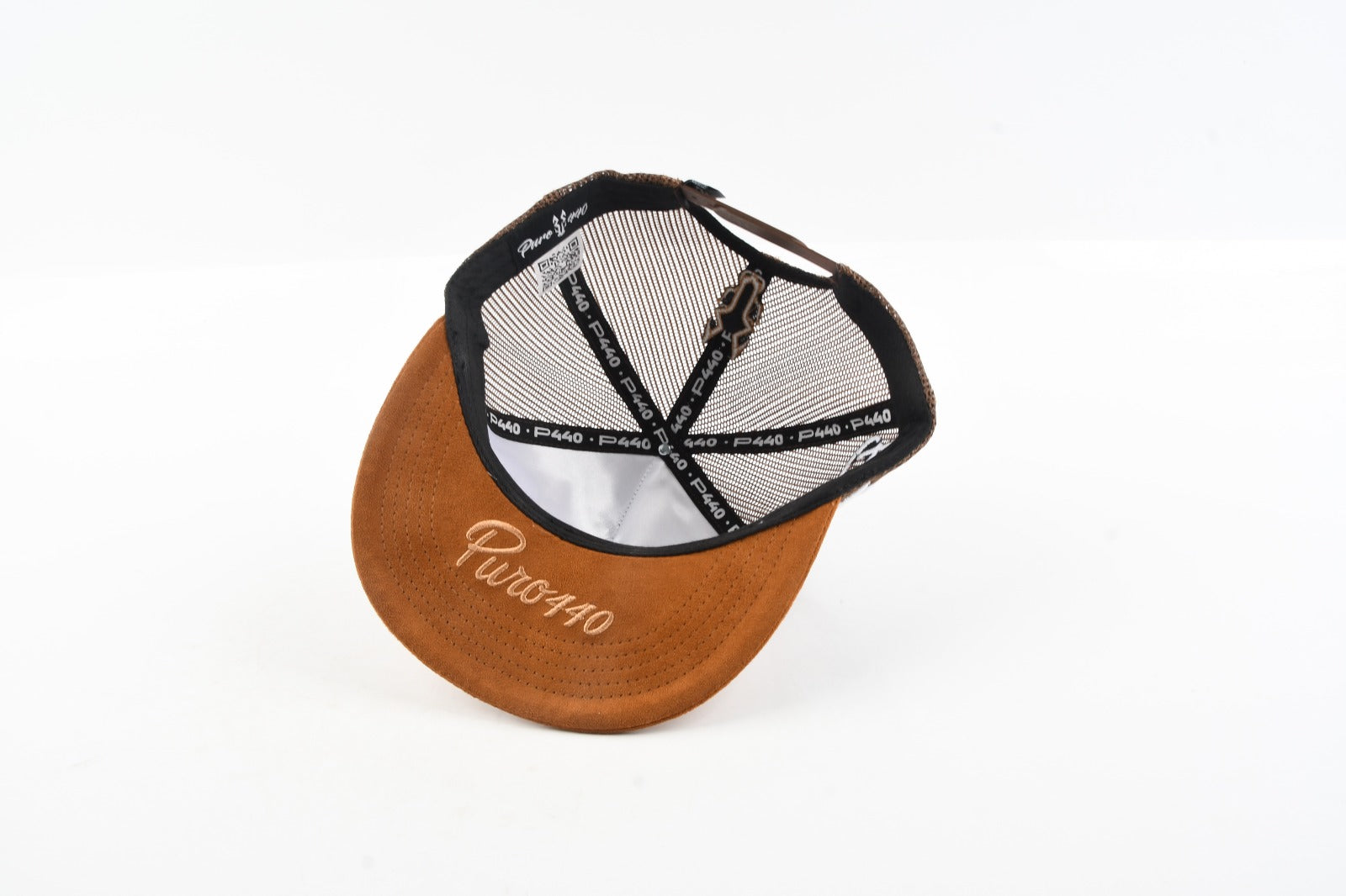 The Bronco Rider 440 from Puro 440 channels arena grit and Western heritage. A rich brown suede brim anchors the crisp white crown and breathable brown mesh back. Up front, a bold bronc-riding embroidery sits framed by rustic wheel details; the back features the iconic P440 horsehead. Finished with our signature underbrim touch and an adjustable snapback for a dialed-in fit, it’s ready for rodeos, ranch days, and weekends that don’t quit.