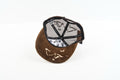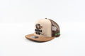 Colors: Cream front with a brown suede-style bill and chocolate mesh backing, giving it a rugged yet clean look.