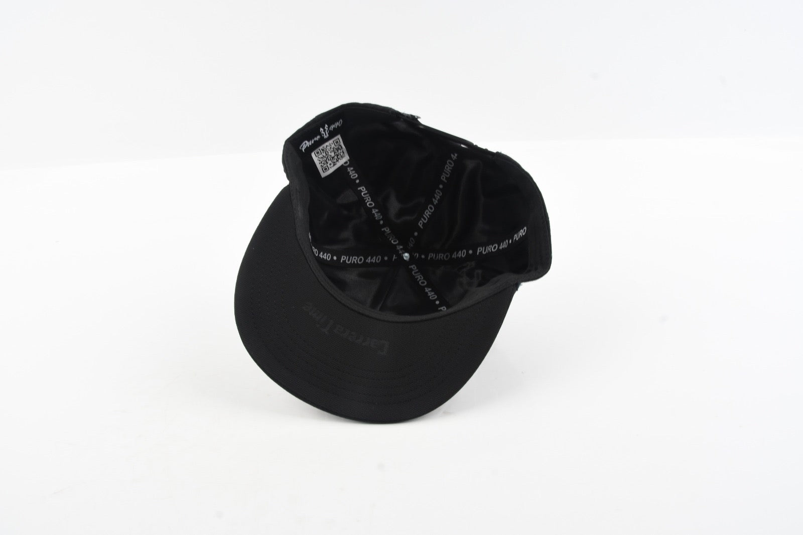 Front Design: Raised chenille embroidery spelling “PURO 440” in bold gothic style, outlined in white for a striking contrast. At the center rests the signature Puro 440 horsehead logo, symbolizing power and identity.