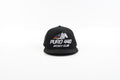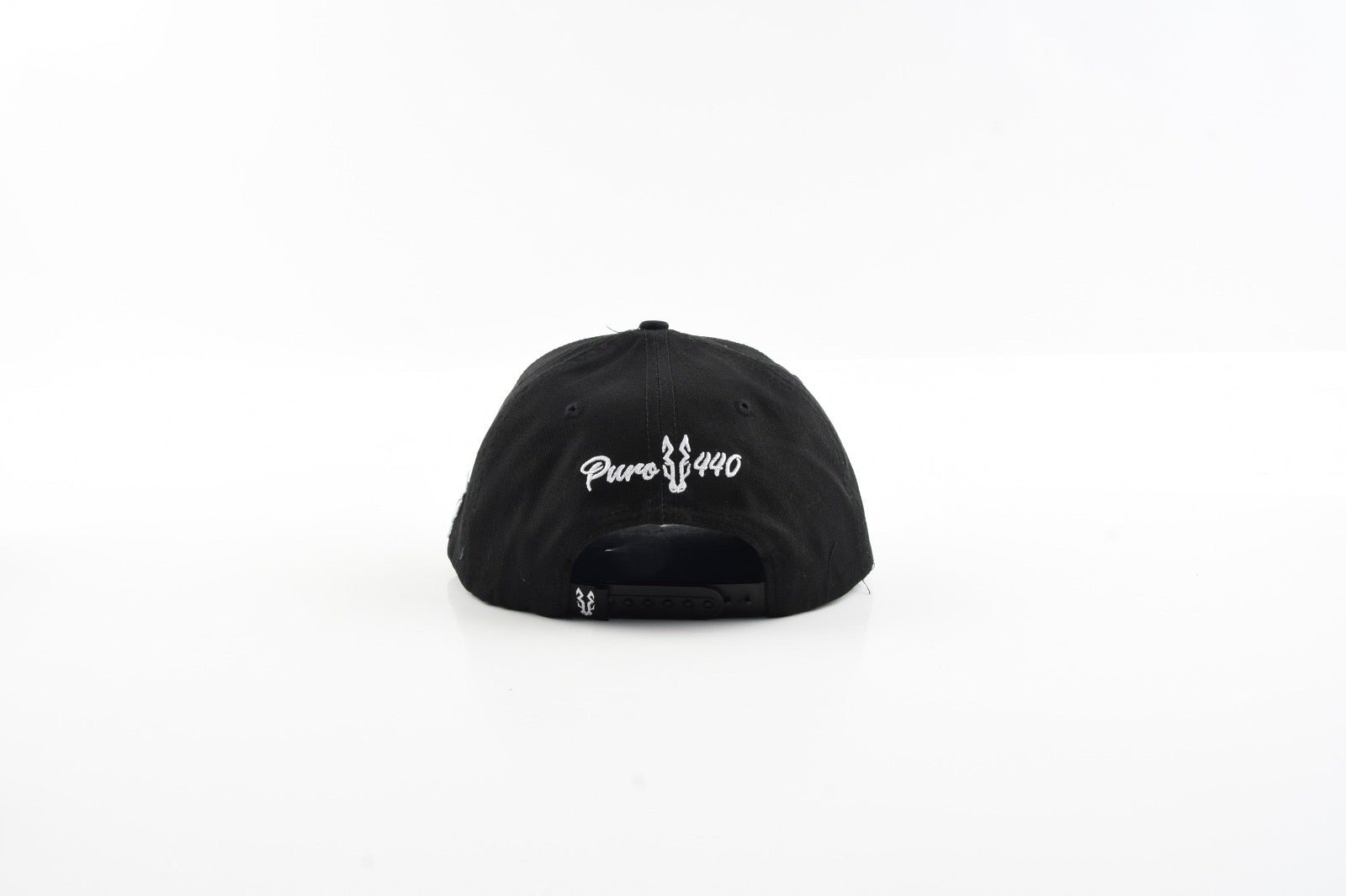Designed in a classic all-black colorway, this flat bill snapback features a bold embroidered Puro 440 Jockey Club logo across the front, highlighted by a dynamic horse-and-jockey graphic that captures speed and precision. The structured crown delivers a sharp, athletic silhouette, while the solid fabric construction keeps the look clean and timeless.