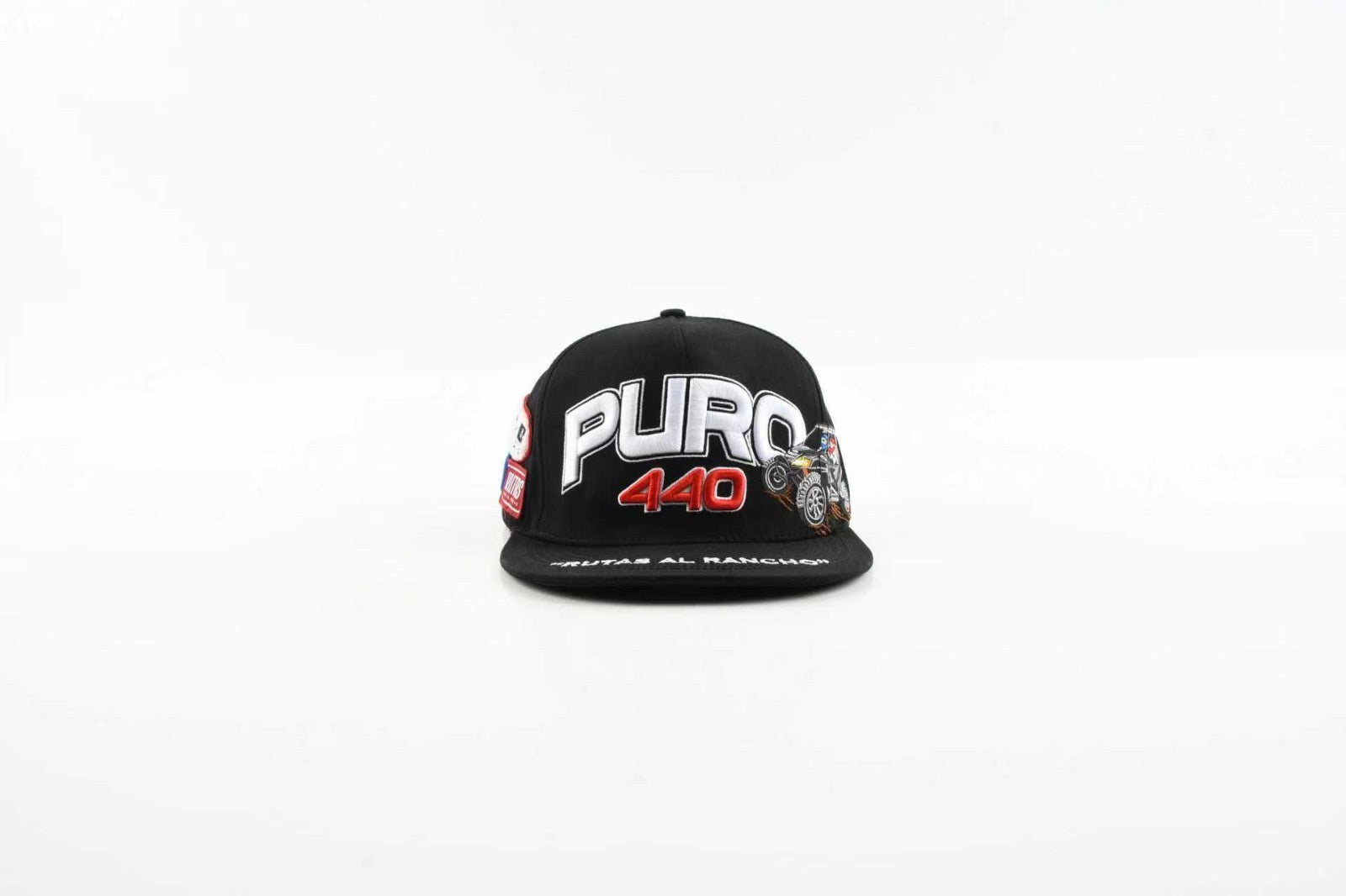 Side patches highlight 440 Racing and Rutas del Rancho, giving it a motorsport badge-collection look that stands out from every angle. Finished with clean underbrim embroidery, this hat blends ranch culture, racing spirit, and streetwear swagger into one statement piece.