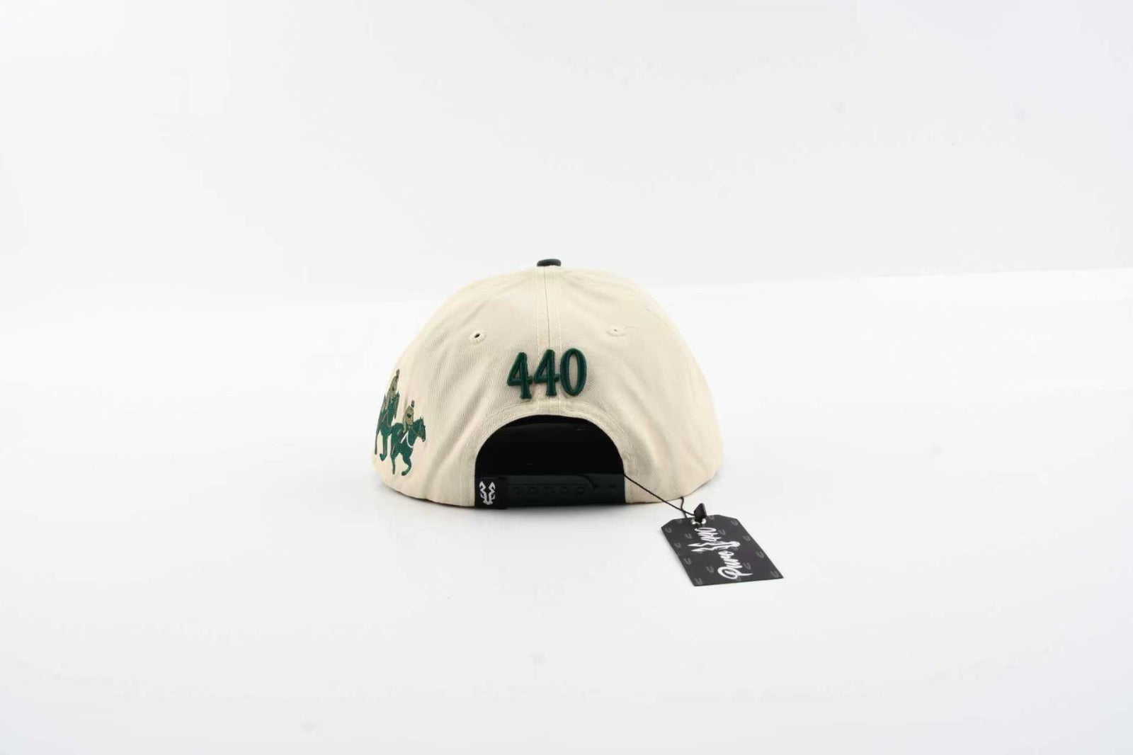 Finished with detailed racing horse embroidery wrapping the side panels, subtle 440 back embroidery, and an adjustable snapback closure, this hat blends heritage racing culture with standout street style—made for those who live for the moment when it’s time to ride.
