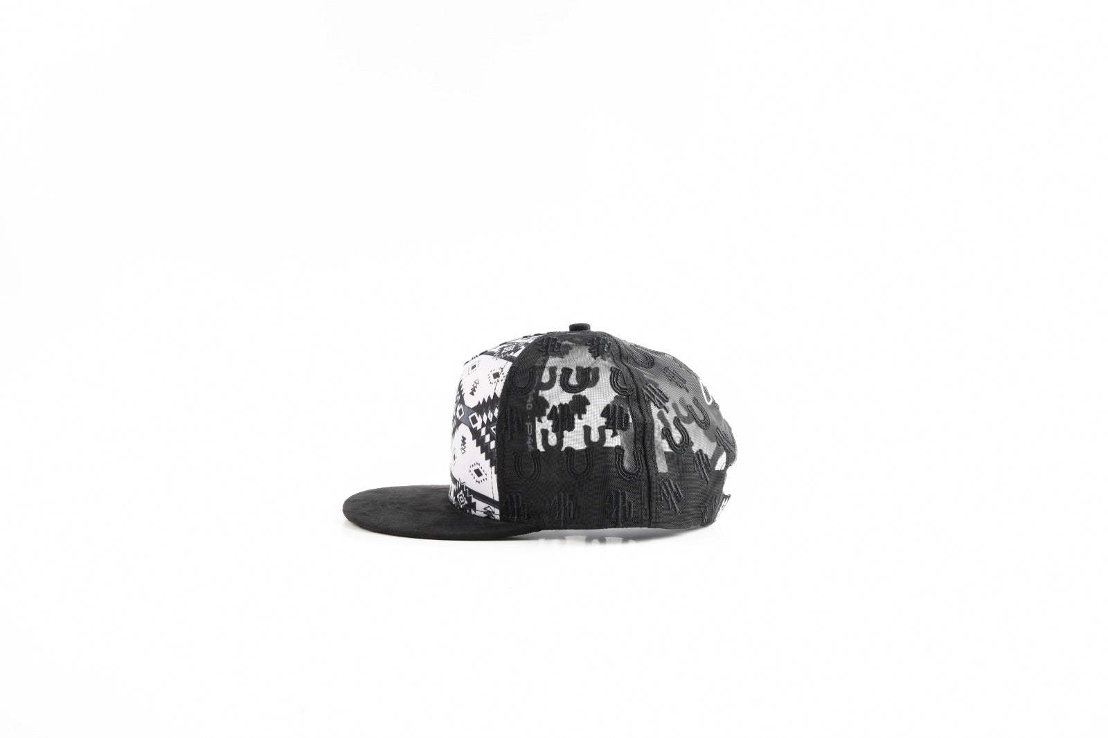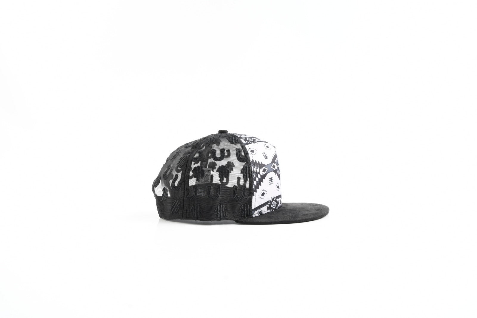 The Sombra Azteca is a statement piece forged at the intersection of ancient heritage and modern ranch-street culture. Its bold black-and-white Aztec pattern draws inspiration from ancestral symbols of strength, protection, and identity—reimagined for today’s fearless generation. The deep black flat brim grounds the design with a raw, rugged edge, while the tonal embroidered details add depth without overpowering the look.