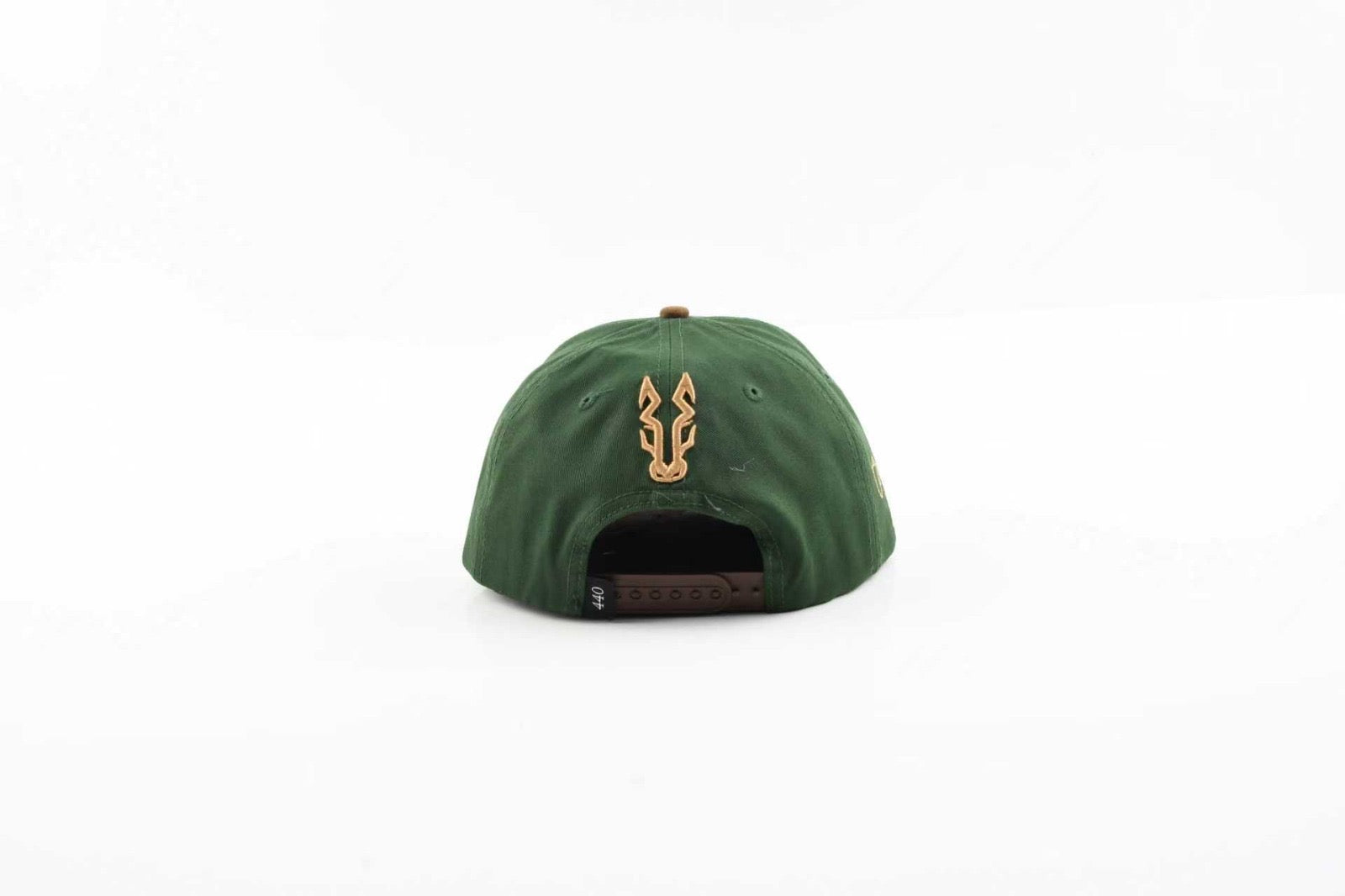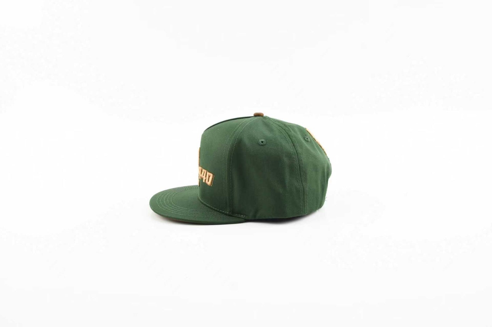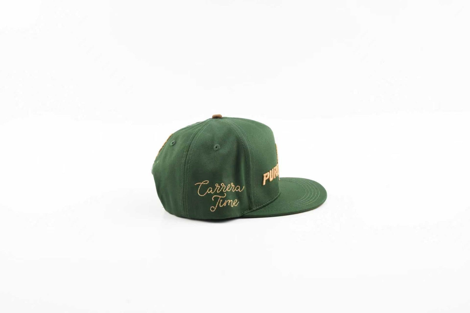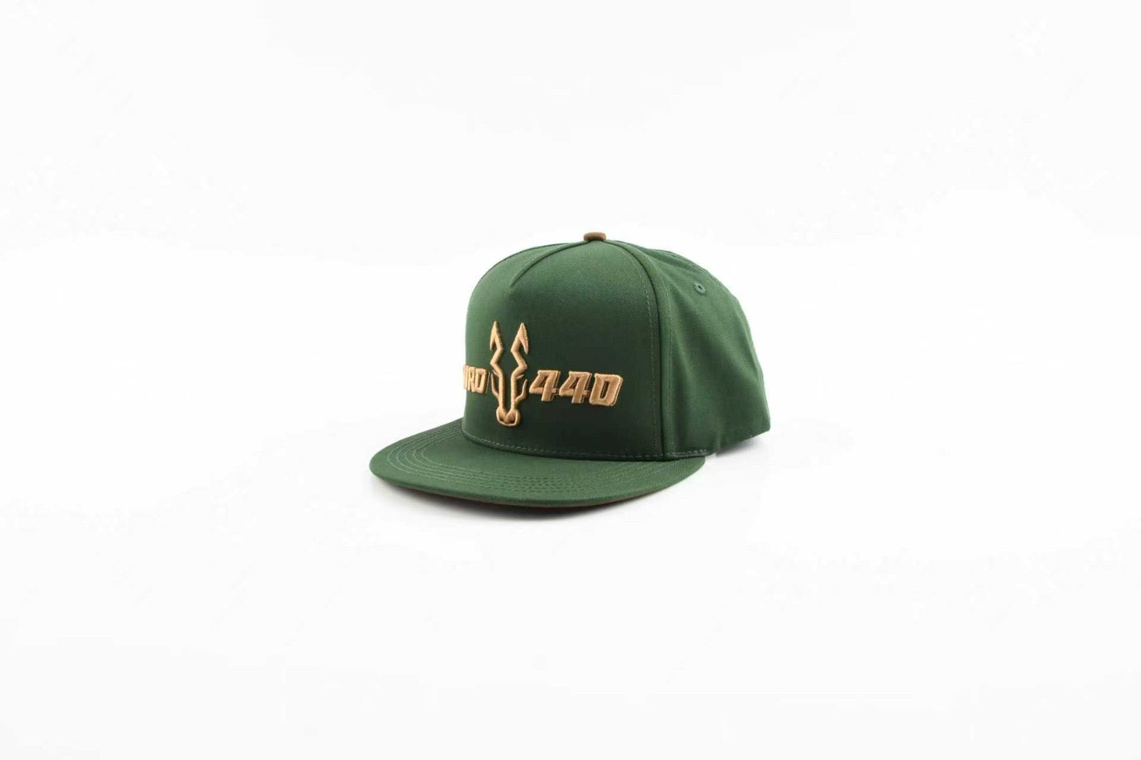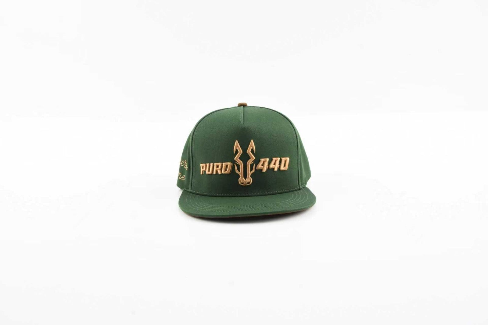 Designed in a deep green colorway with tan accents, this flat bill snapback features the iconic Puro 440 front embroidery with the signature horse mark, delivering a bold yet refined statement. The structured crown provides a sharp silhouette, while the solid fabric construction keeps the look classic and premium.