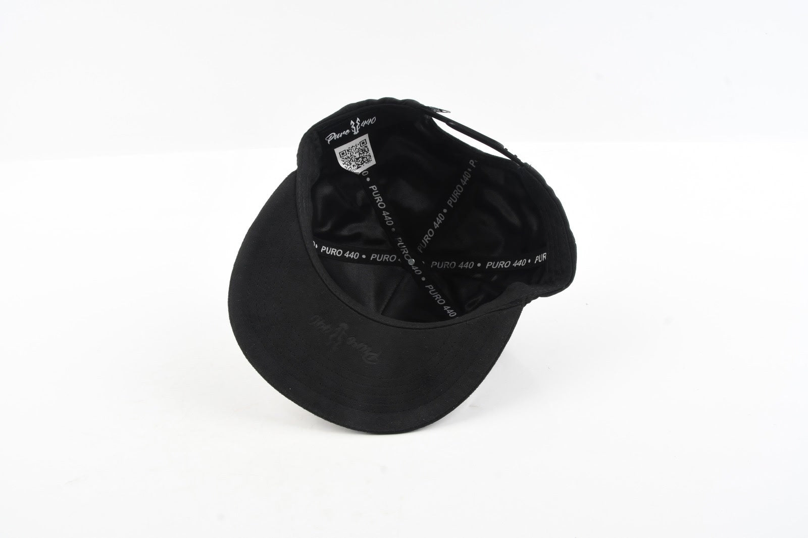 Brim: Black suede flat bill with subtle Puro 440 embossing underneath for a hidden detail of authenticity.